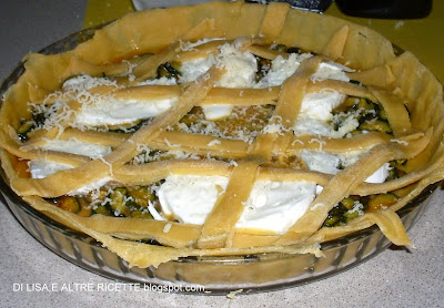 Stendete il secondo impasto,coprite ed infine bucherellatelo con i rebbi di una forchetta,infornate a 170°