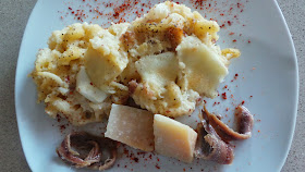Per contorni:acciughe sott'olio,dadi di parmigiano reggiano