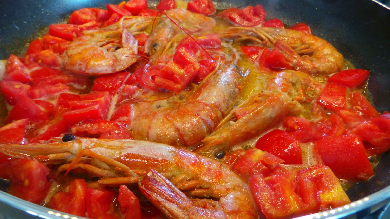 Amo cucinare il pesce,lo preferisco alla carne;questa ricetta nasce dalla mia voglia di un piatto da "re",come usiamo dire a Napoli quando un piatto è degno di una grande tavola,una tavola da signori insomma. Oltre la bonta'che appartiene a questa preparazione,resta il fatto che io ho una passione per piatti di questo tipo,mi piace tantissimo cucinarli,li trovo molto piu' creativi rispetto a quelli con la carne.Ovvio che come parita' di prezzi,il pesce è molto piu' costoso,ma almeno la domenica mi concedo questo lusso,sono una fissata,per me non è un giorno speciale se a tavola non c'è un bel piatto come questo.Quai sempre cambio tipo di pesce e ricetta,stavolta ho voluto strafare ,la mia seconda meta' si è presentato con dei meravigliosi gamberoni,cosi' grossi che non potevo scegliere che cucinarli come si deve.Poi per arricchire il piatto ho aggiunto il resto che spieghero',il risultato è stato come avevo immaginato,bastava chiudere gli occhi per sentirsi serviti nel miglior ristorante della citta'(a Napoli ce ne sono,ma con il pesce il conto è da paura). La soddisfazione piu' grande me la sono fatta passare cucinando di persona,divertirmi tanto come mi piace ,mangiare da "re" ma a casa mia,senza spendere una cifra enorme ,con tutte le comodita',si' perche' a volte anche andare al ristorante stressa. Per gli ingredienti : 6 gamberoni grossi di mare 500g di pomodori rossi 500 g di vongole veraci olio di oliva a piacere sale aglio prezzemolo vino bianco 500 g di linguine o bavette Per ottenere il top da questo piatto,il pesce deve essere assolutamente fresco;noi napoletani,non abbiamo questi problemi,ci basta avere la una pescheria di fiducia per non avere brutte sorprese affidandoci sempre alla stessa,per chi non ha questa fortuna non abitando in un posto di mare,consiglio un'ottimo surgelato. Fare un taglio netto ai gamberoni all'altezza della pancia,appoggiarli in una padella antiaderente con una generosa quantita' di olio,farli rosolare da entrambi i lati velocemente,unire un bicchiere di vino bianco secco,far evaporare. Spegnere il fuoco,preparare i pomodori lavandoli e tagliandoli in quattro parti eliminando i semi,togliere il pesce dalla padella,aggiungere i pomodori,salare,far cuocere per pochi minuti,infine unire il prezzemolo tritato. Dopo aver fatto spurgare le vongole,passarle sotto un getto di acqua appena,fatele aprire in una pentola senza acqua,unitele al sugo aggiugendo la loro acqua rilasciata ,accendere il fuoco,rimettere i gamberoni in padella ,saltate il tutto. Cuocere la pasta al dente,calarla direttamente in padella girando il tutto piu' volte,finche' non si crea una cremina,servire caldissimo.