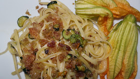 LINGUINE E ZUCCHINE CON PANE ALL'ACCIUGA.