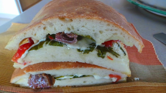 La pizza,vera passione degli italiani, è un piatto internazionale,rappresenta l'Italia in tutto il mondo,conosciuta per i suoi colori :il bianco della mozzarella,il rosso del pomodoro,il verde del basilico simboli della bandiera .Molto ignote sono le sue origini,l'unica certezza che abbiamo è che diventa piatto conosciuto dall'invenzione della pizza Margherita di Napoli.Piatto in uso in molte regioni del sud con le tante versioni,da tempo è stata adottata anche dalla nord Italia come alimento di uso comune.Quale alimento piu' di esso puo' testimoniare le nostre abitudini verso il cibo,usi e costumi ;la pizza sara' un'argomento molto in auge all'evento Expo 2015 di Milano per rappresentare la cucina Italiana nel Mondo,per far conoscere creativita',tradizione e cultura del cibo italiano.Presente sara' con le sue testimonianze il mondo del web;paretecipanti saranno le blogger che fanno parte del sito :Le Bloggalline ;sito che ha organizzato un Contest promosso da INforma CIBO con il patrocinio di Expo 2015 Milano. Vorrei volentieri dare un mio piccolissimo contributo a questa grande iniziativa ,postando questa ricetta che ho elaborato per essere onorata di far parte come una "piccola particella" in questo grande Contest delle Bloggalline. Sciogliere il lievito nell'acqua tiepida,aggiungere la farina,impastare con energia,unire lo zucchero,l'olio ed infine il sale. Lavorare bene l'impasto per almeno 15 minuti(a piacere farsi aiutare dallimpastatrice),formare un panetto,far lievitare un'ora. Lavare i pomodorini,eliminare i semi;tagliare in quattro piccole parti,tagliare la mozzarella a fette dopo aver eliminato il siero in eccesso.Pulire la rucola,usare solo le foglioline piu' tenere,asciugarla su un panno da cucina. Riprendere l'impasto,dividetelo in due pezzi;con il primo pezzo,foderare uno stampo da forno oleato dandogli una forma allungata. Coprire l'impasto con i pomodori,la mozzarella,la rucola,le alici,un filo di olio,un pizzico di pepe. Stendete il secondo pezzo di impasto e disponetelo sul precedente,sigillate bene i bordi.Fate dei forellini con la forchetta e oleate i bordi,fatelo riposare ancora mezz'ora circa.Infornate per 35 minuti a 180°. Con questa ricetta,partecipo al Contest di:Le Bloggalline La Cucina Italiana nel mondo verso L'Expo 2015 in collaborazione di INformacibo.