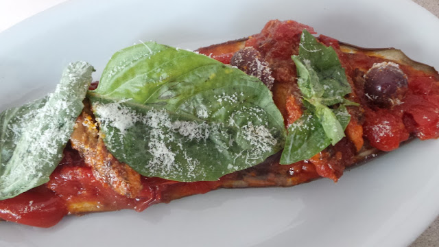 è la melanzana a barchetta ,un classico amato dai napoletani.Che io ricordi,era sempre festa in casa quando mia madre la preparava ,lei era la "regina",alias chef,a cucinarle,riesco ancora ad immaginare