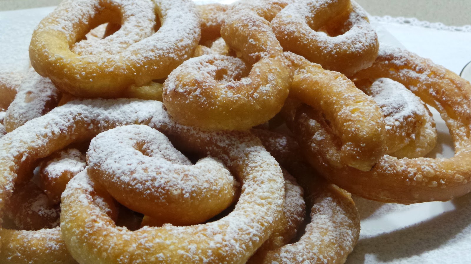 di gusto,erano diverse .La caratteristica stava nella presenza dell'impasto della cannella,rum e vaniglia,mi è stato spiegato poi dal proprietario del negozio che mi anche invitata ad acquistare il loro libro dove c'erano tanti altri dolci .Differente a noi ,loro li preparano tutto l'anno,è un po' come la nostra graffa,e sono i dolci preferiti del luogo.A me piacciono tanto,li preparo spesso,li ho anche inserito nella lista dei dolci di Carnevale,li trovo molto carini oltre ad essere buonissimi.