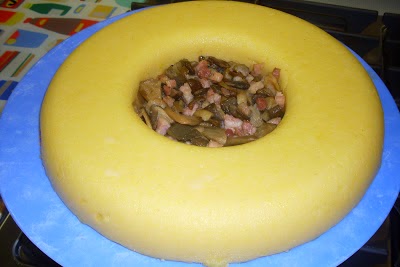 Aggiungete il tutto nello sformato di polenta dove avrete creato un centro abbastanza capiente.