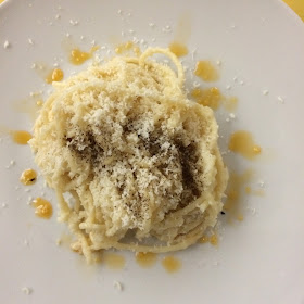 Spaghetti con crema di cavolfiore,cubetti di provola,formaggio pecorino