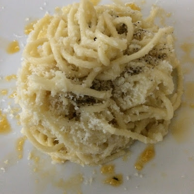 Spaghetti con crema di cavolfiore,cubetti di provola,formaggio pecorino